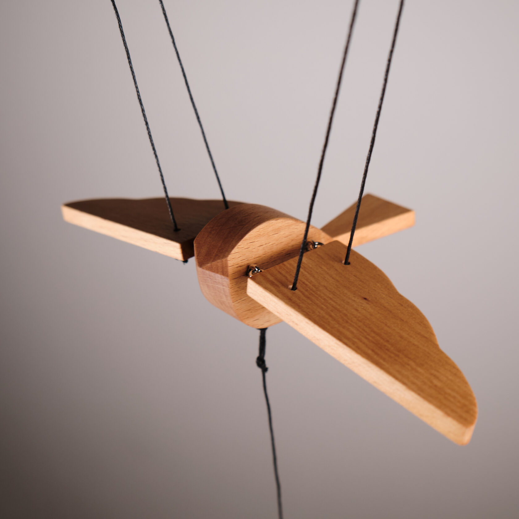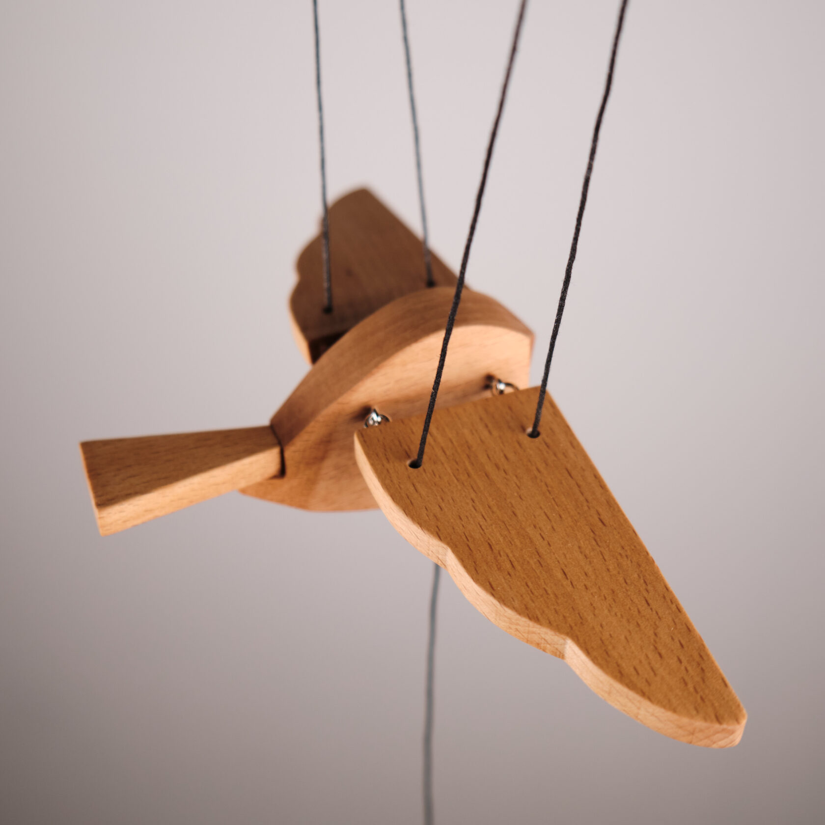 Невеличка. Ласточка - первая из стаи трех новых невеличек. Изящная ласточка сбалансирована, при оттягивании нити вниз машет крыльями. Игрушка небольшая, подойдет в любой интерьер и особенно в детскую комнату.