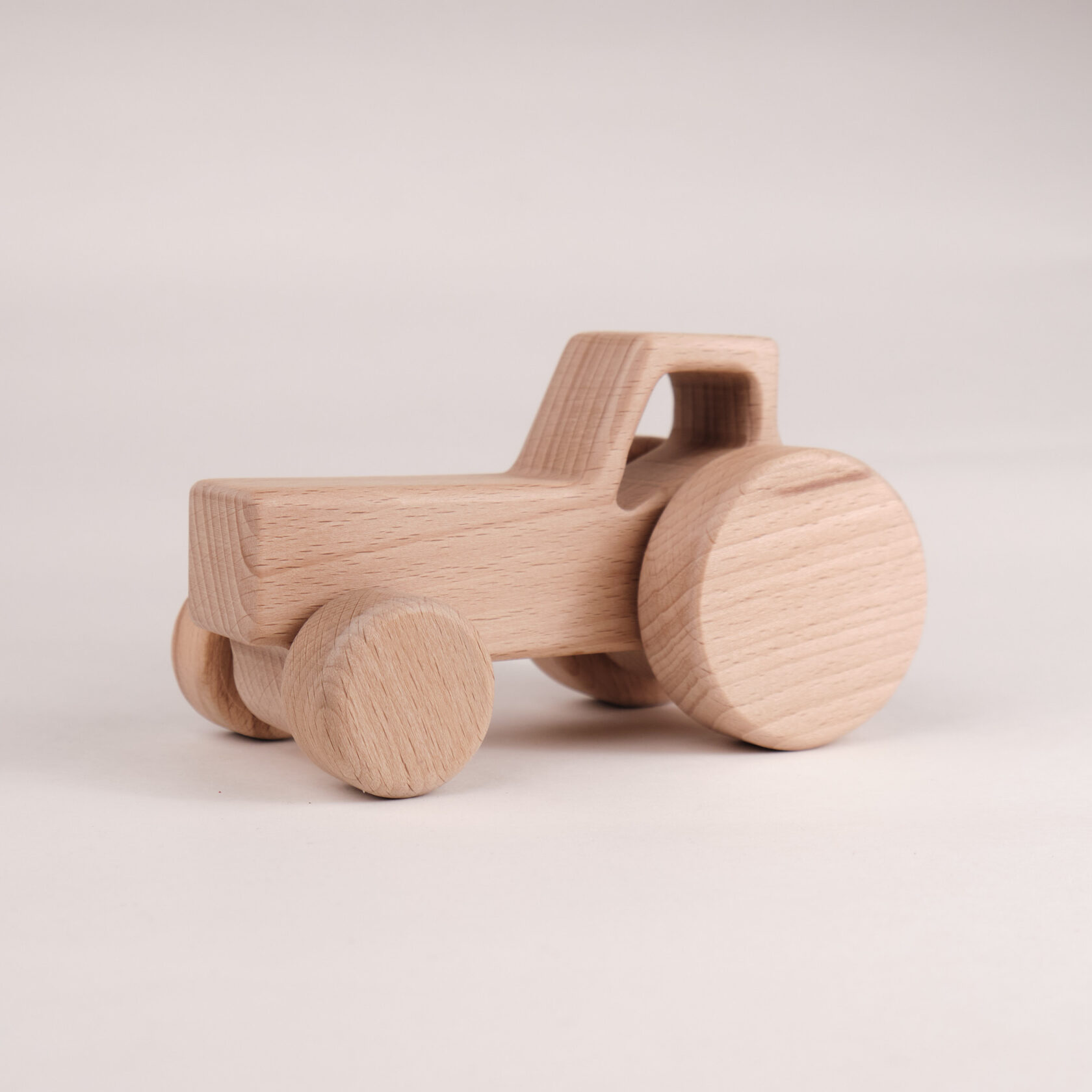 Размер машинки - 15х8см Сделан полностью из массива Бука Натуральный Трактор покрыт сертифицированным маслом Красный покрыт акриловой краской+акриловый лак на водной основе